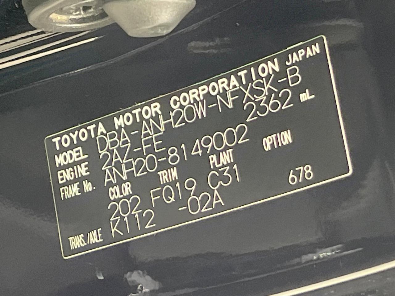 | Chassis No | ANH20-8149002 |