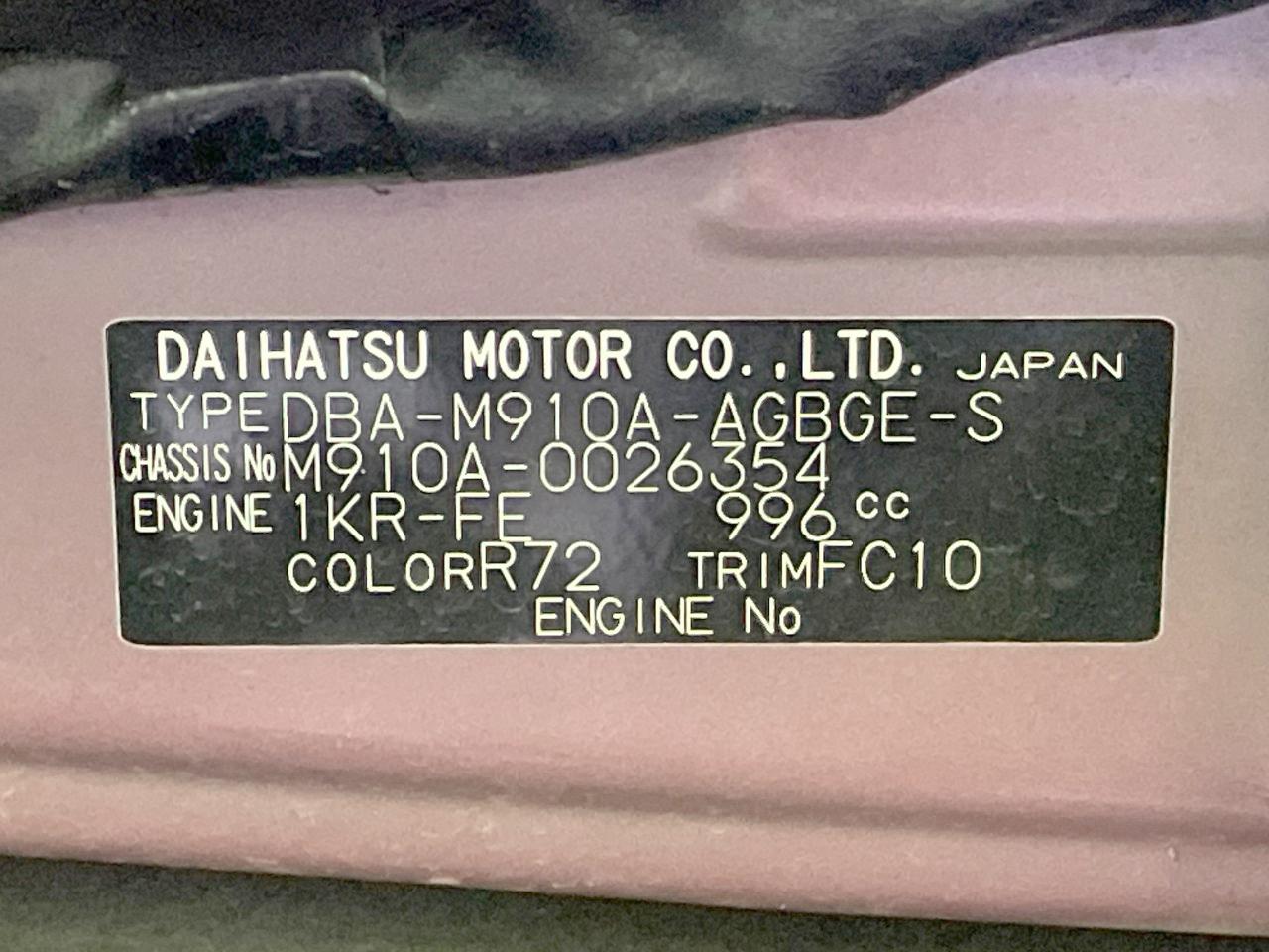 | Chassis No | M910A-0026354 |