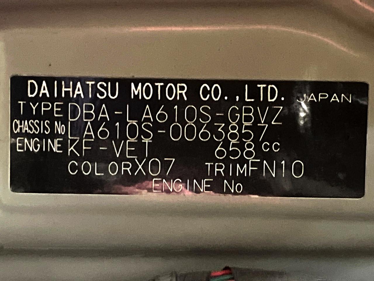 | Chassis No | LA610S-0063857 |