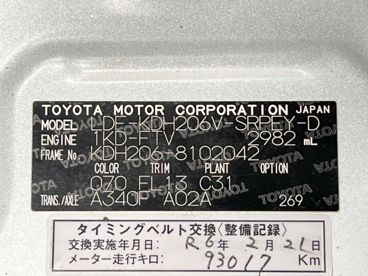 | Chassis No | KDH206-8102042 |
