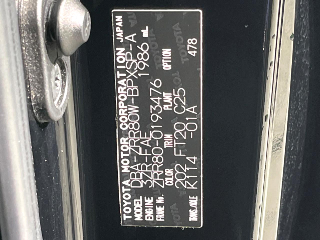 | Chassis No | ZRR80-0193476 |