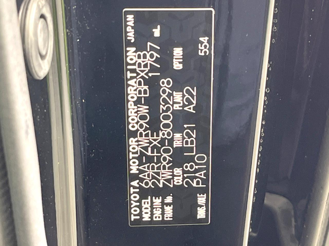 | Chassis No | ZWR90-8003298 |