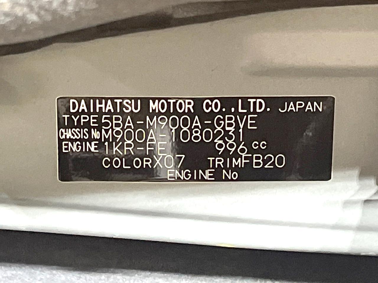 | Chassis No | M900A-1080231 |