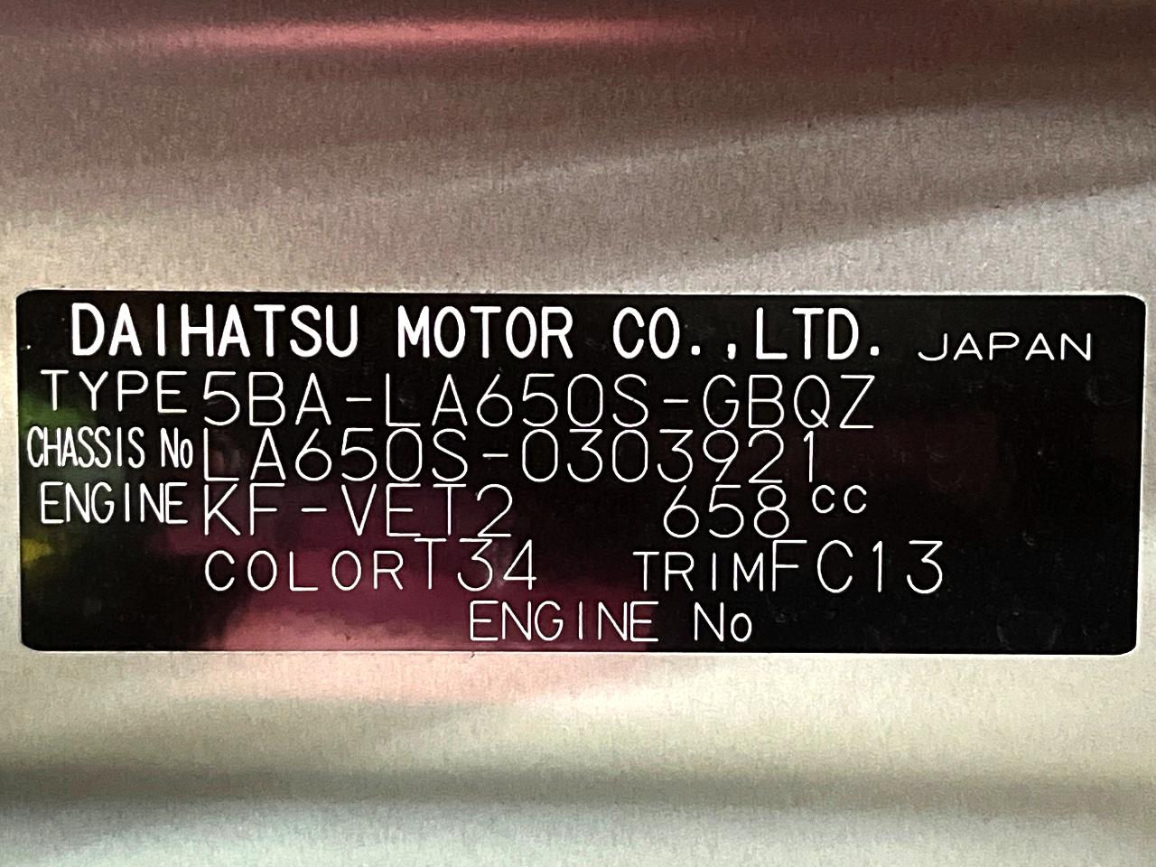 | Chassis No | LA650S-0303921 |