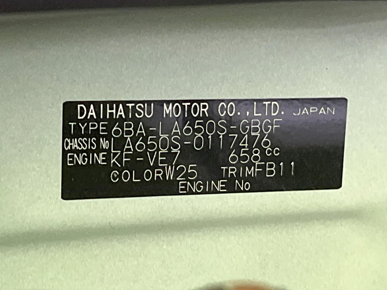| Chassis No | LA650S-0117476 |