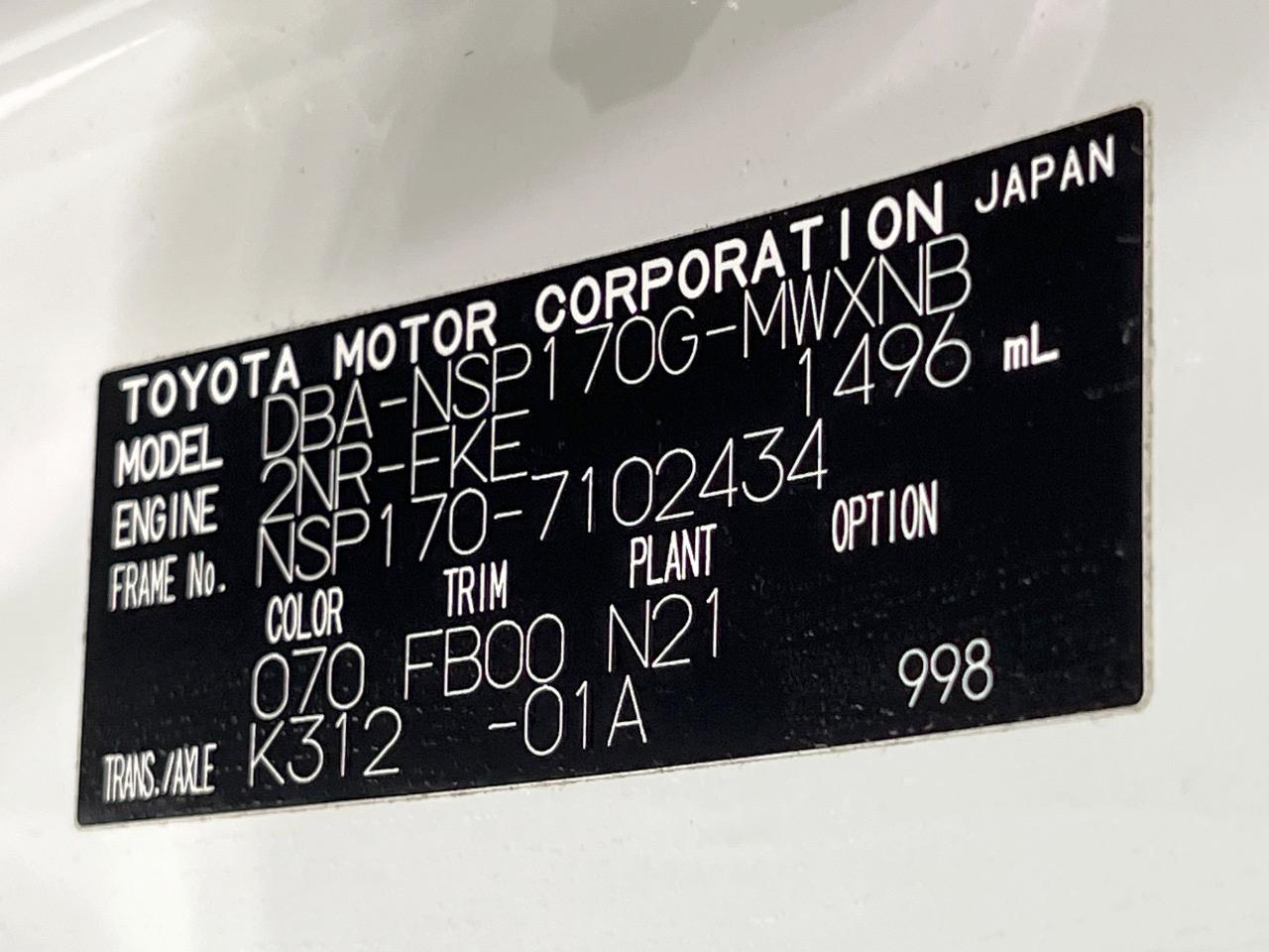 | Chassis No | NSP170-7102434 |