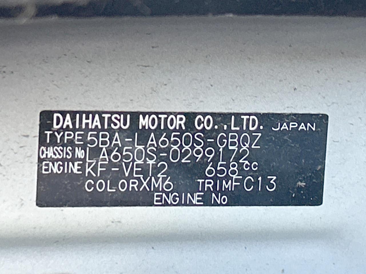 | Chassis No | LA650S-0299172 |