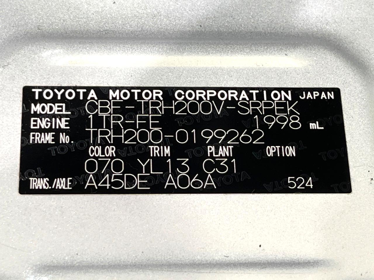 | Chassis No | TRH200-0199262 |