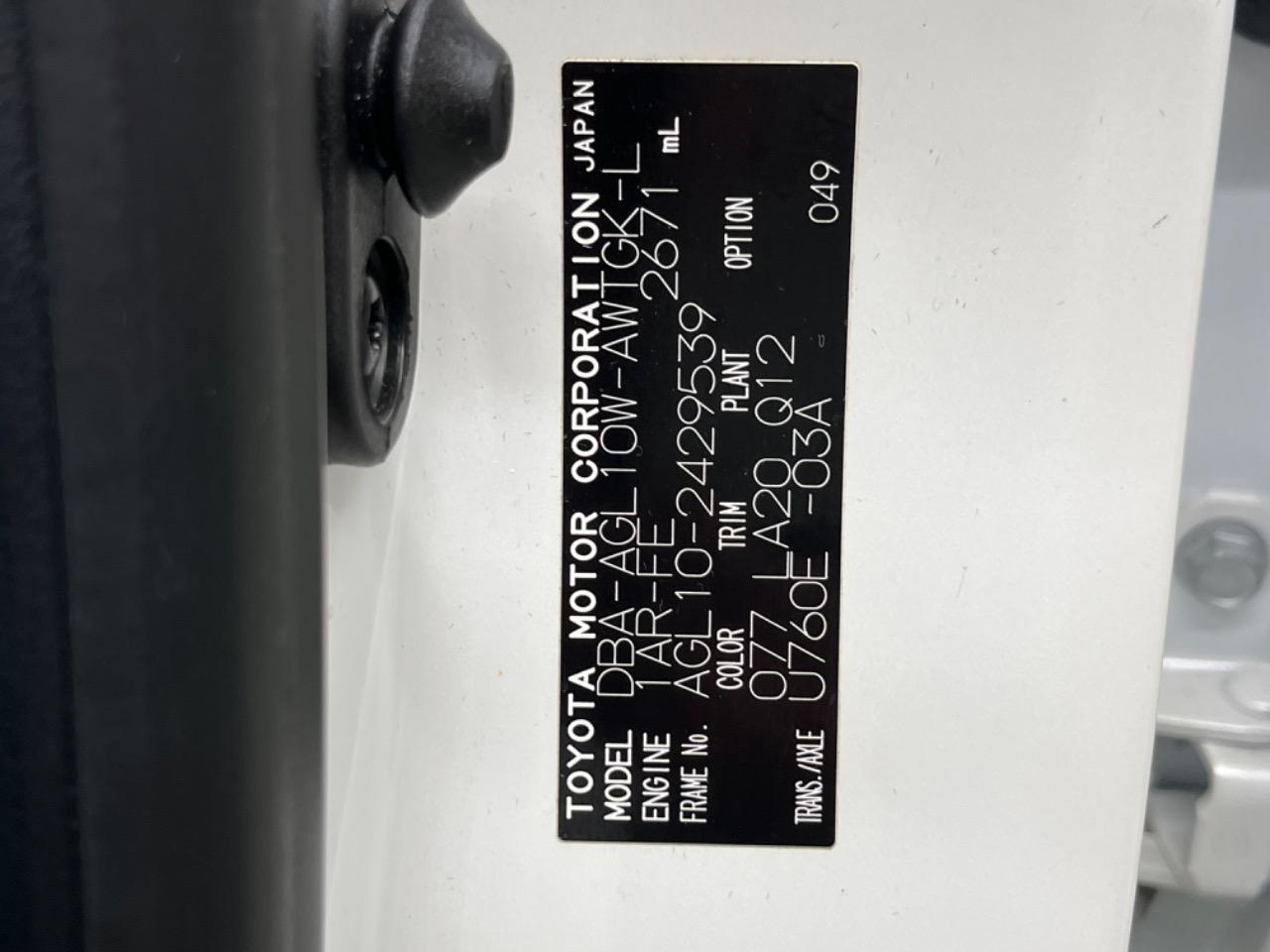 | Chassis No | AGL10-2429539 |