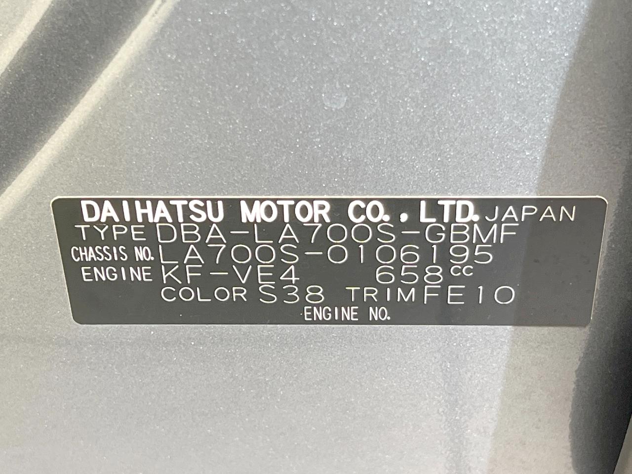 | Chassis No | LA700S-0106195 |