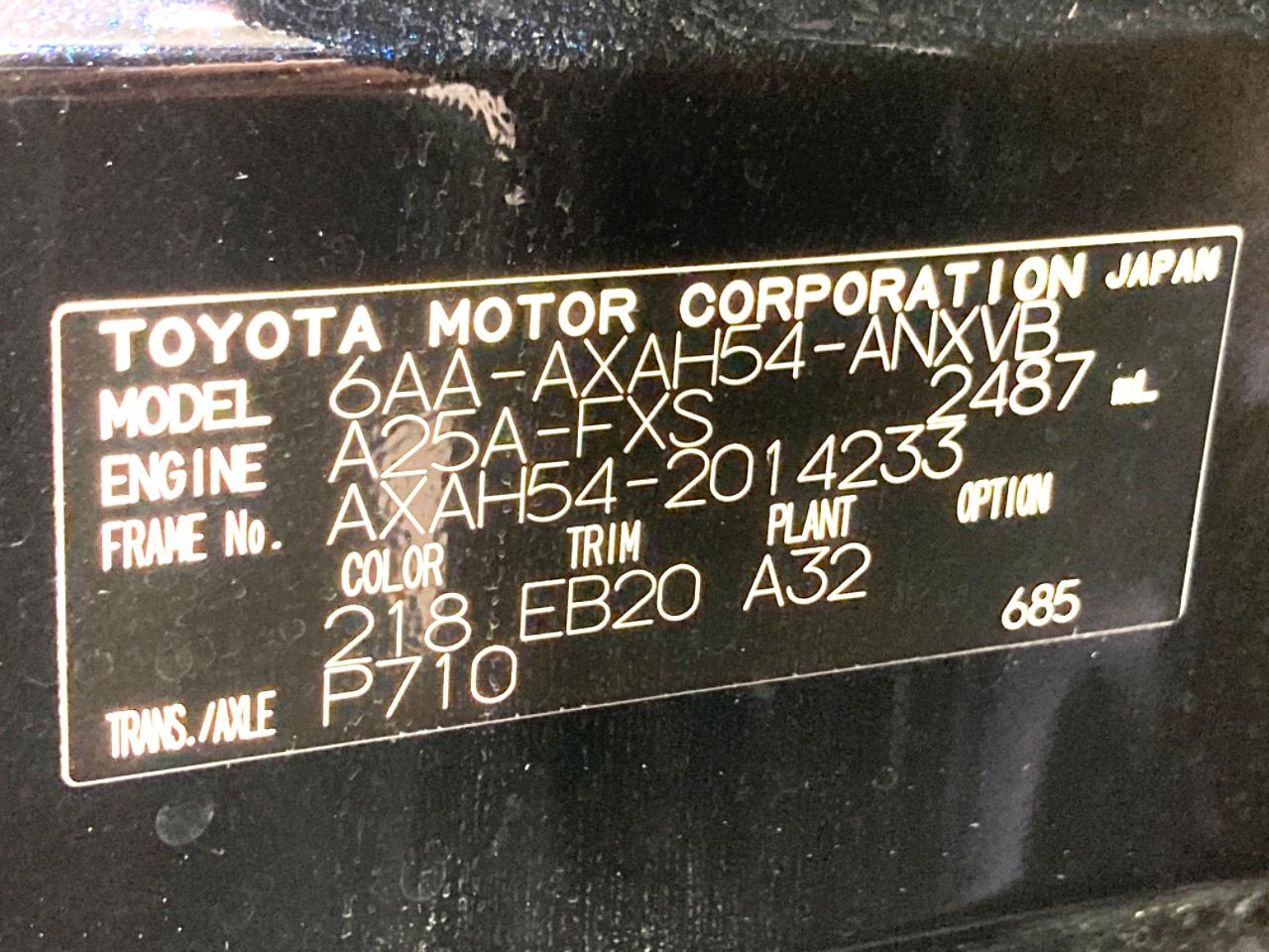 | Chassis No | AXAH54-2014233 |