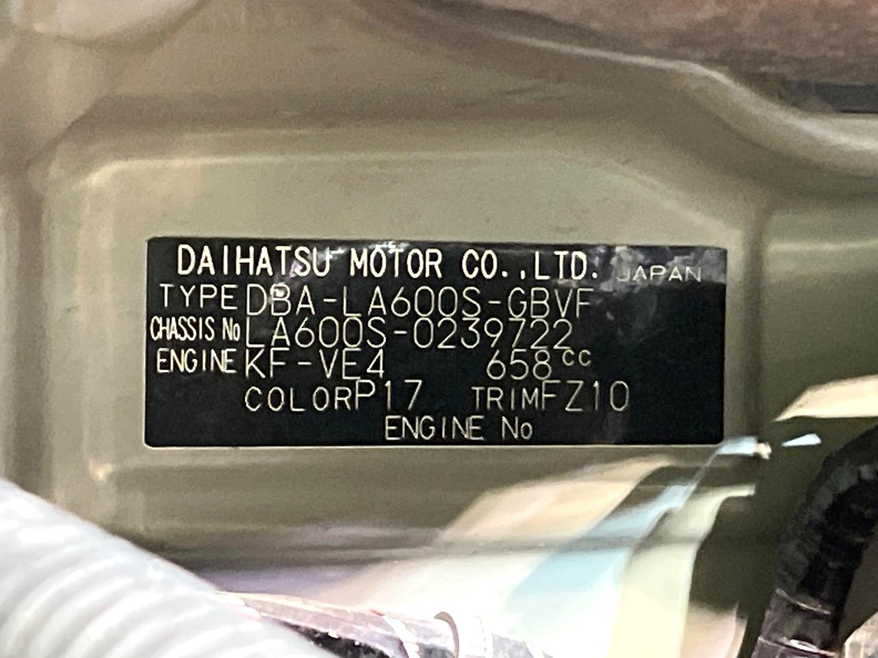 | Chassis No | LA600S-0239722 |