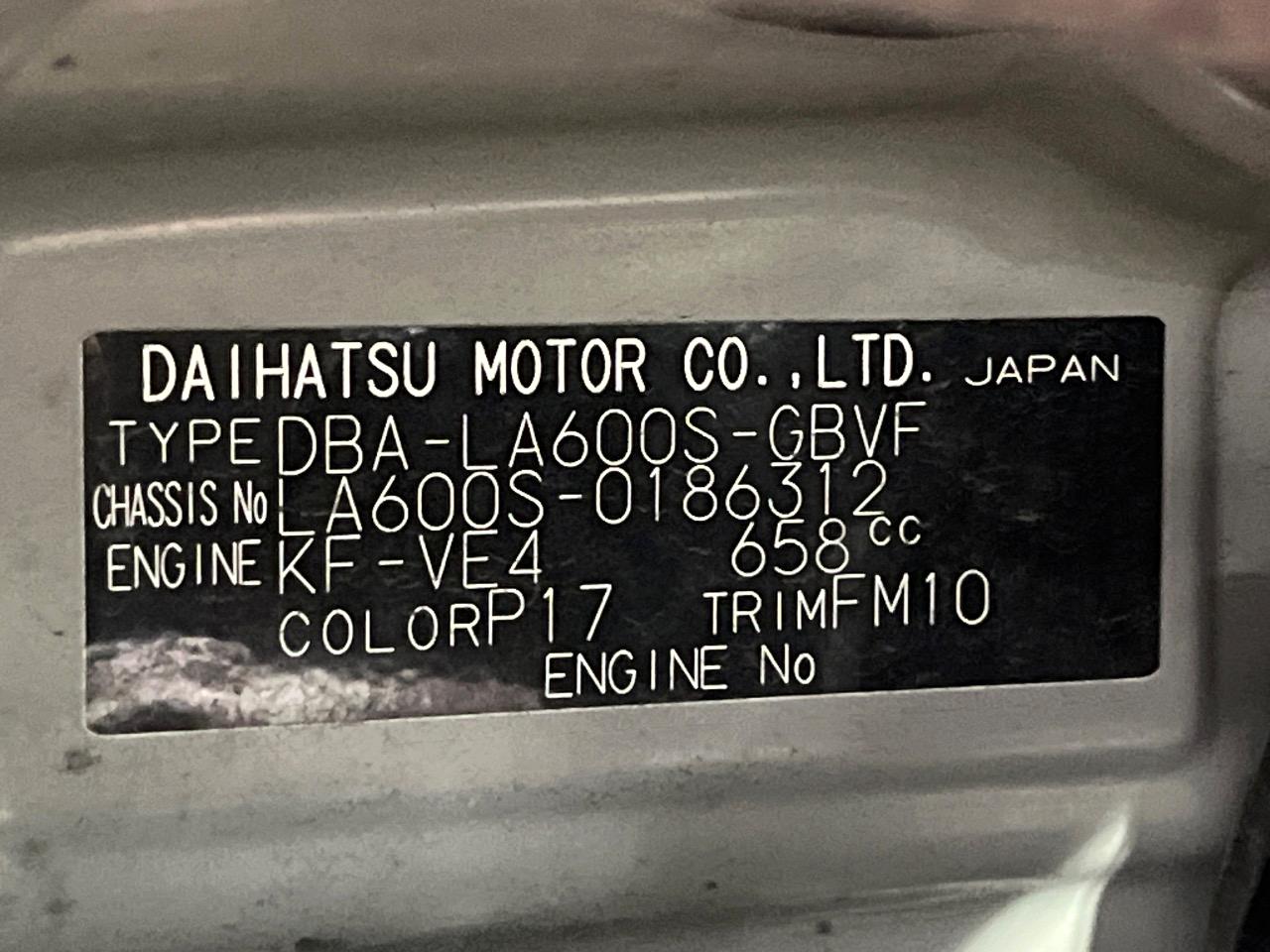 | Chassis No | LA600S-0186312 |