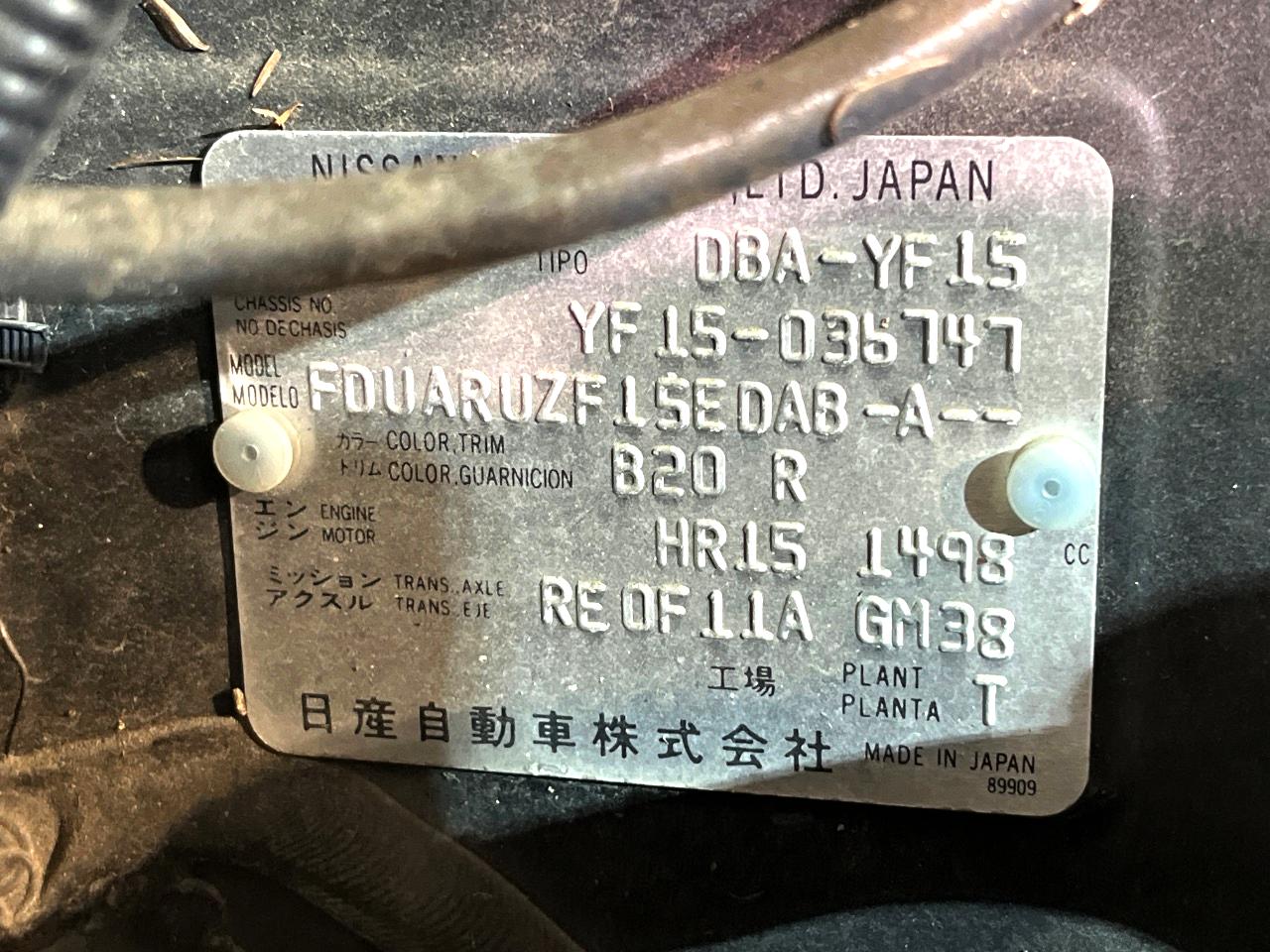 | Chassis No | YF15-036747 |