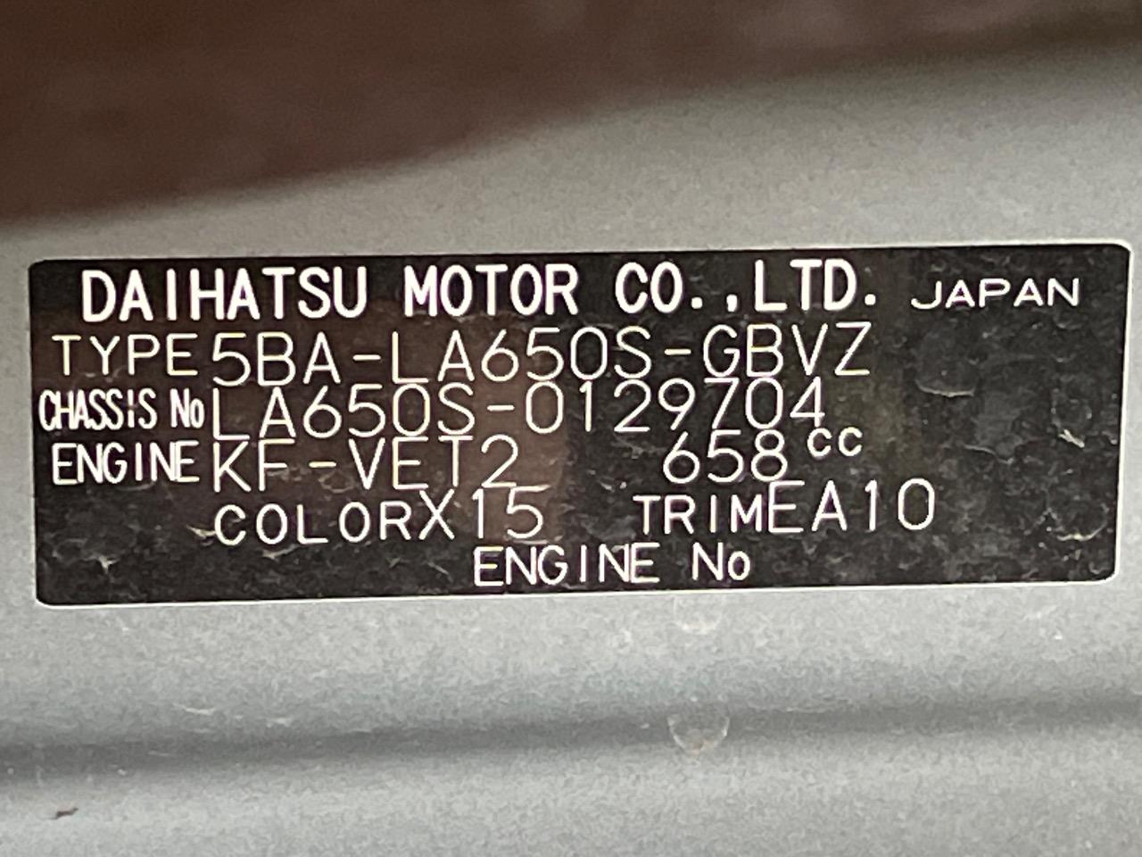 | Chassis No | LA650S-0129704 |