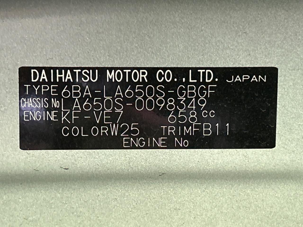 | Chassis No | LA650S-0098349 |