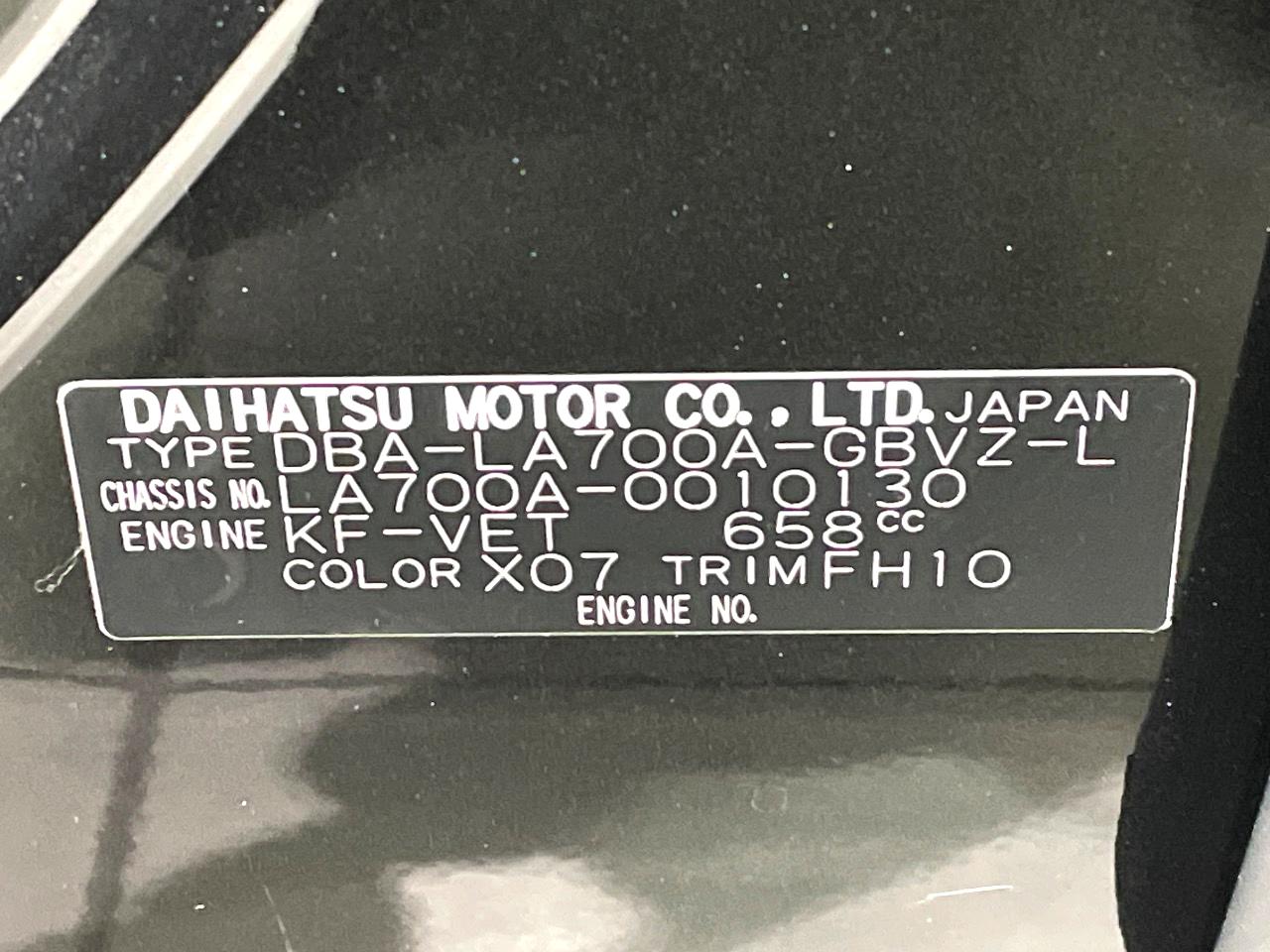 | Chassis No | LA700A-0010130 |
