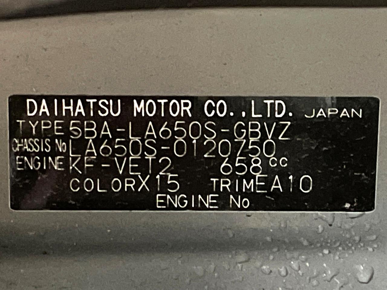 | Chassis No | LA650S-0120750 |