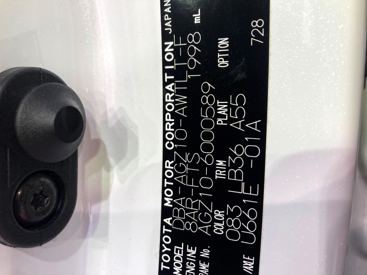 | Chassis No | AGZ10-6000589 |