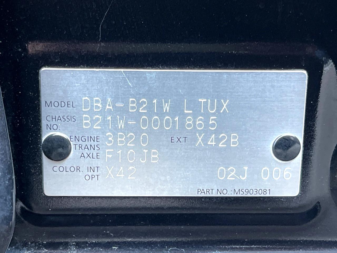 | Chassis No | B21W-0001865 |
