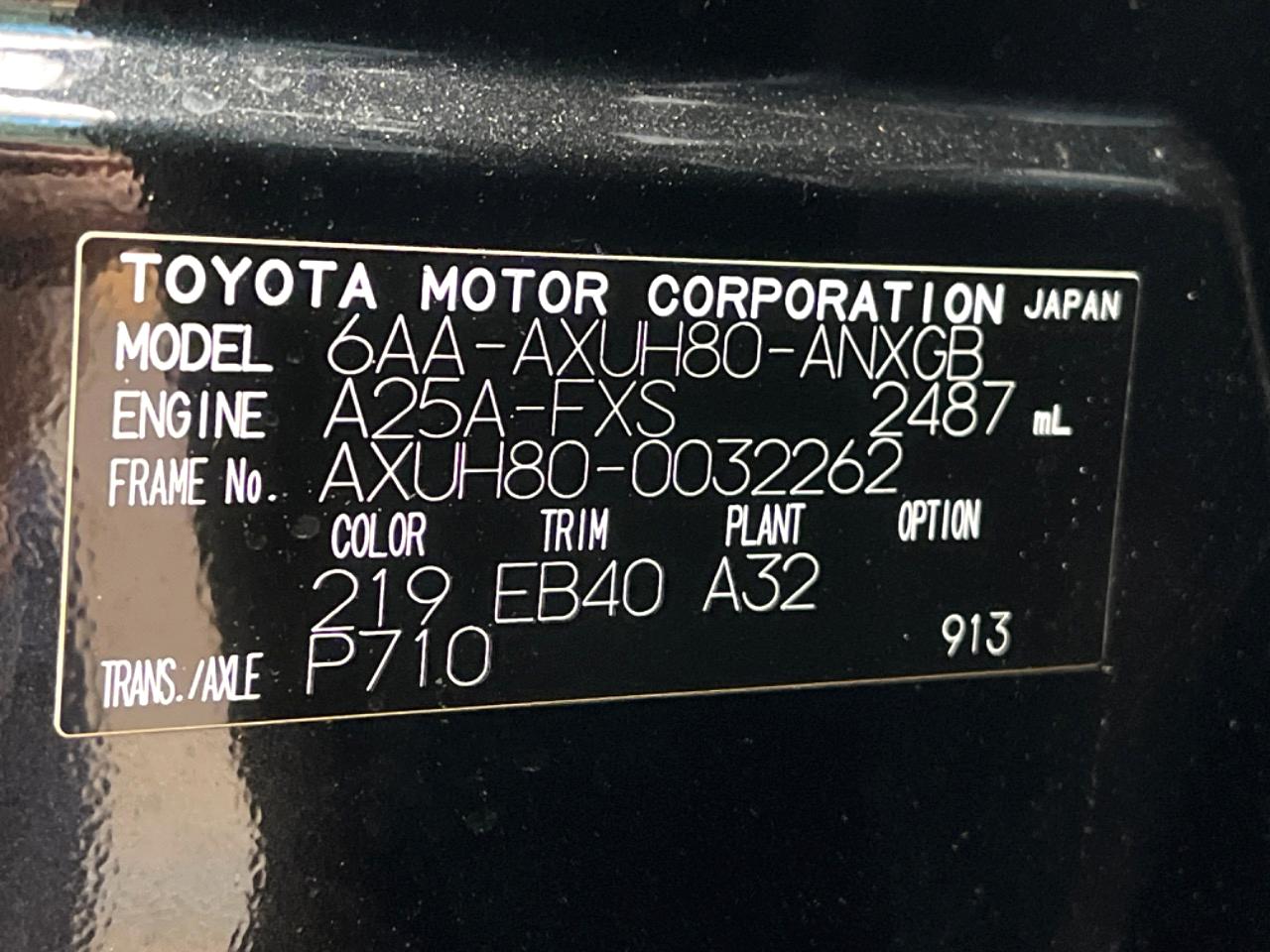 | Chassis No | AXUH80-0032262 |