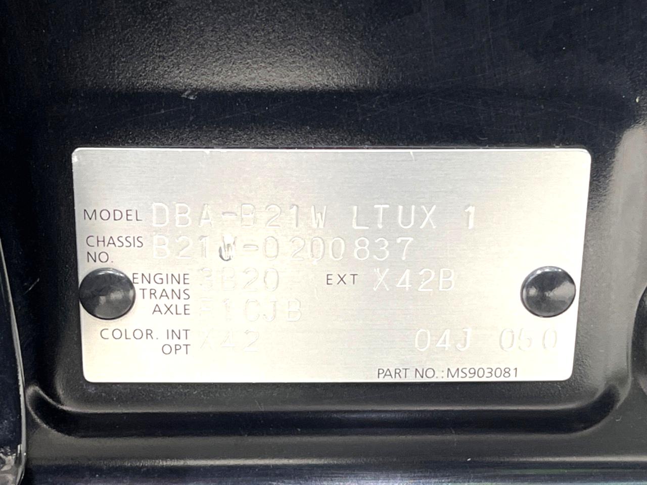 | Chassis No | B21W-0200837 |