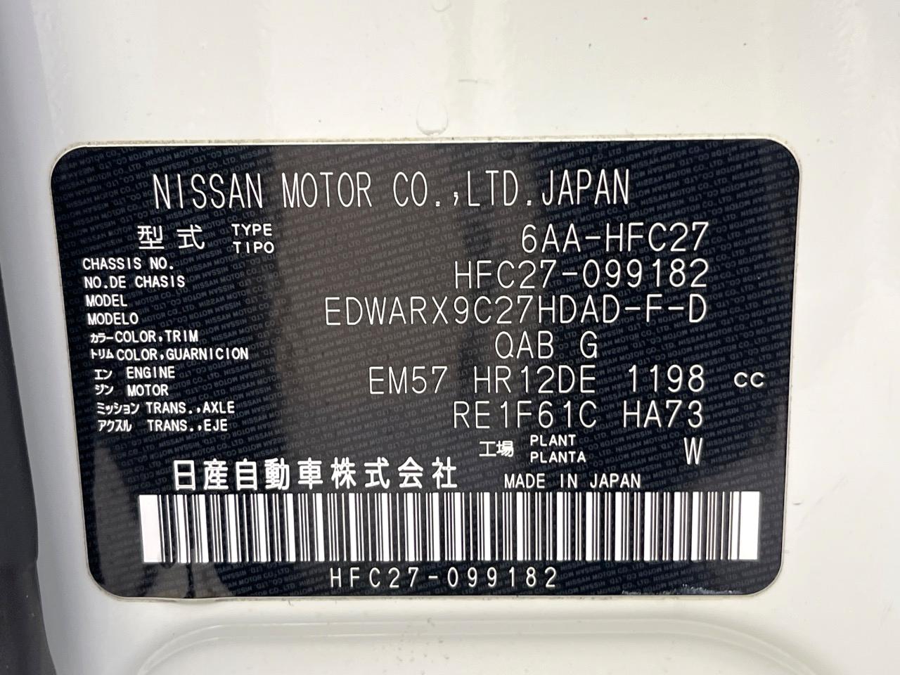 | Chassis No | HFC27-099182 |
