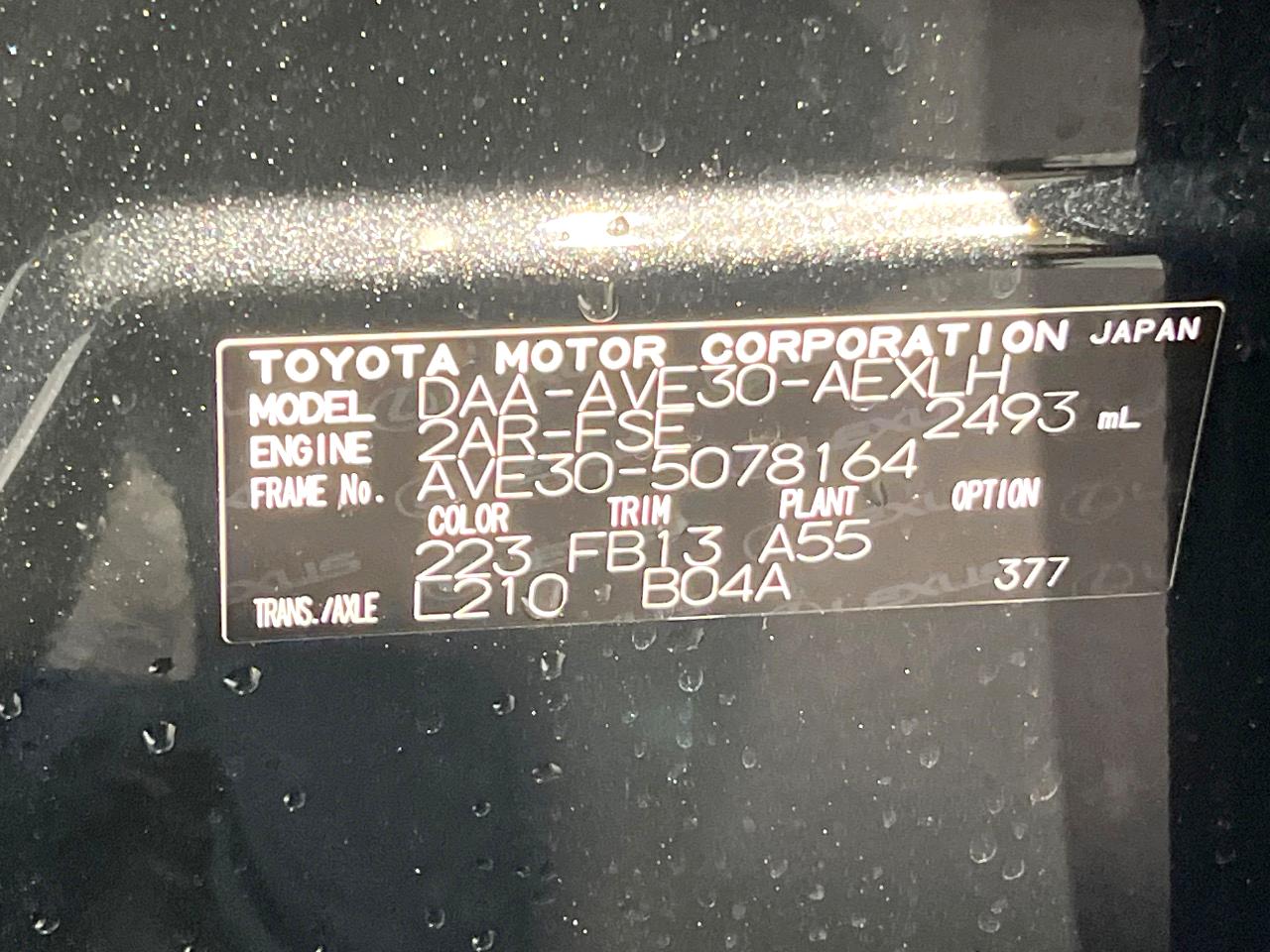 | Chassis No | AVE30-5078164 |
