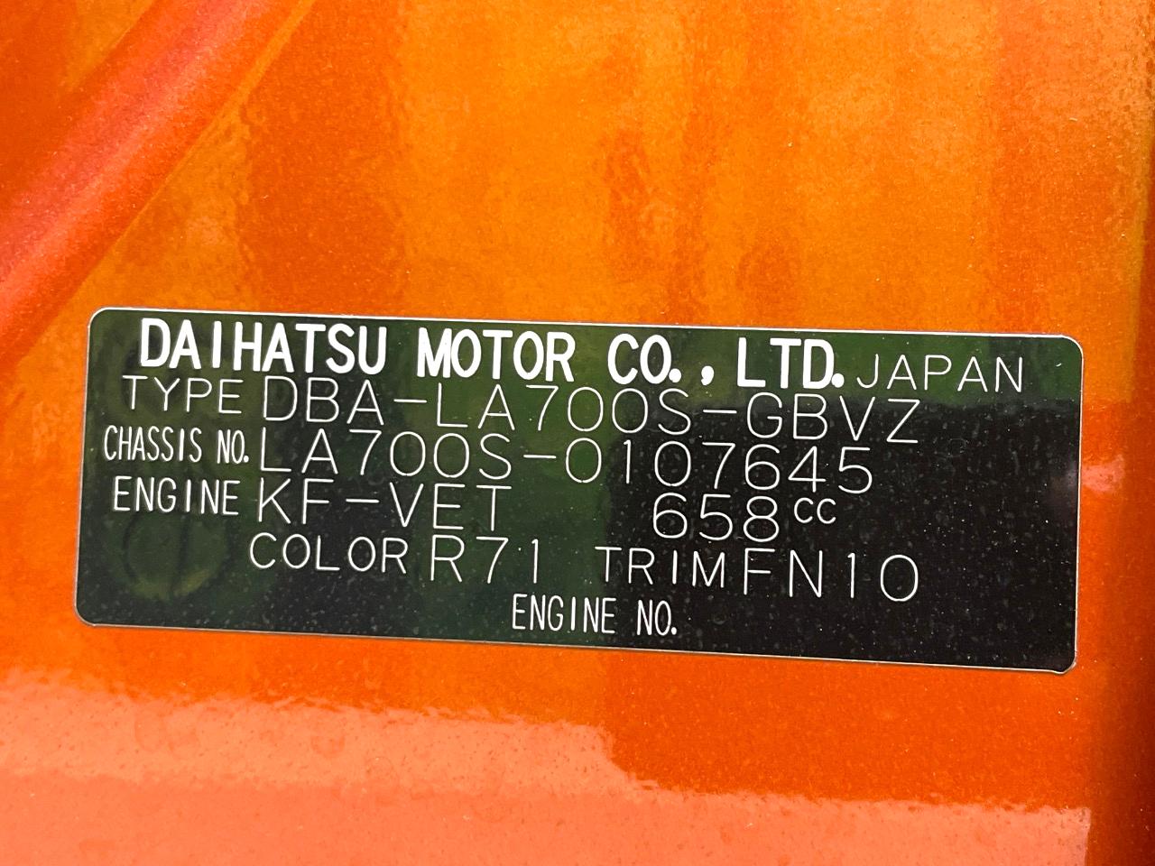 | Chassis No | LA700S-0107645 |