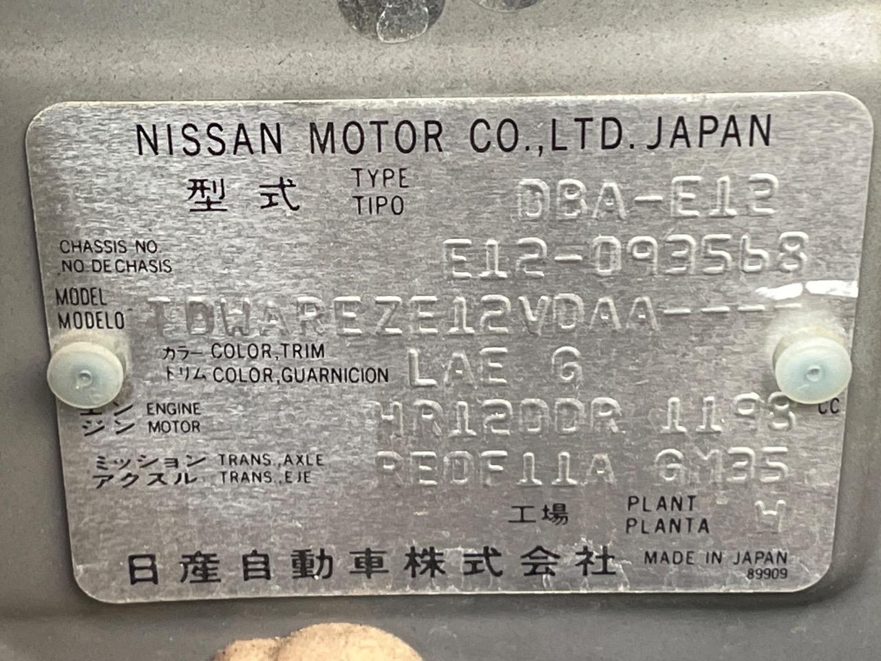 | Chassis No | E12-093568 |
