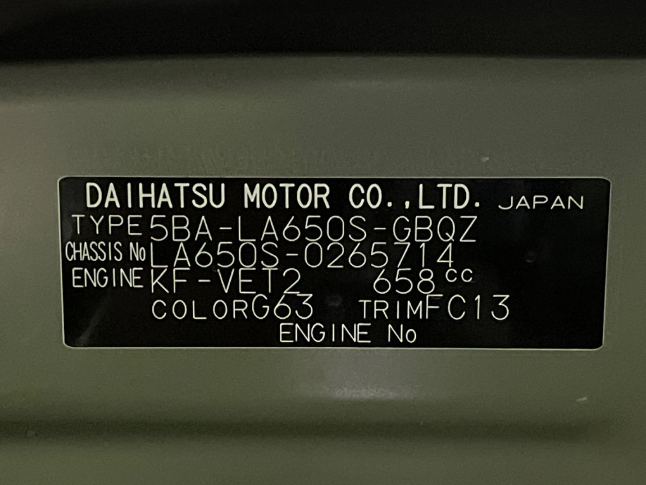 | Chassis No | LA650S-0265714 |