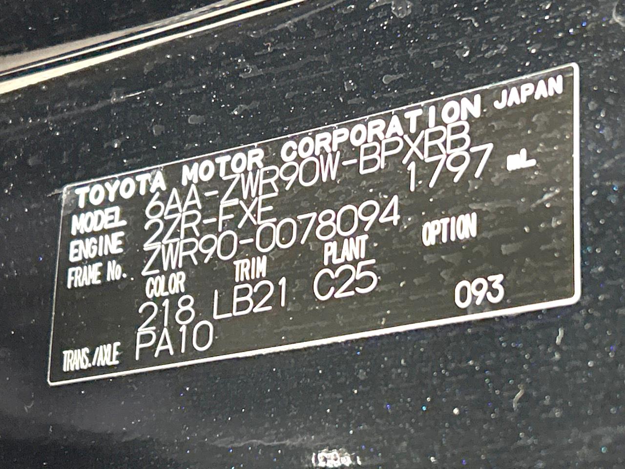 | Chassis No | ZWR90-0078094 |