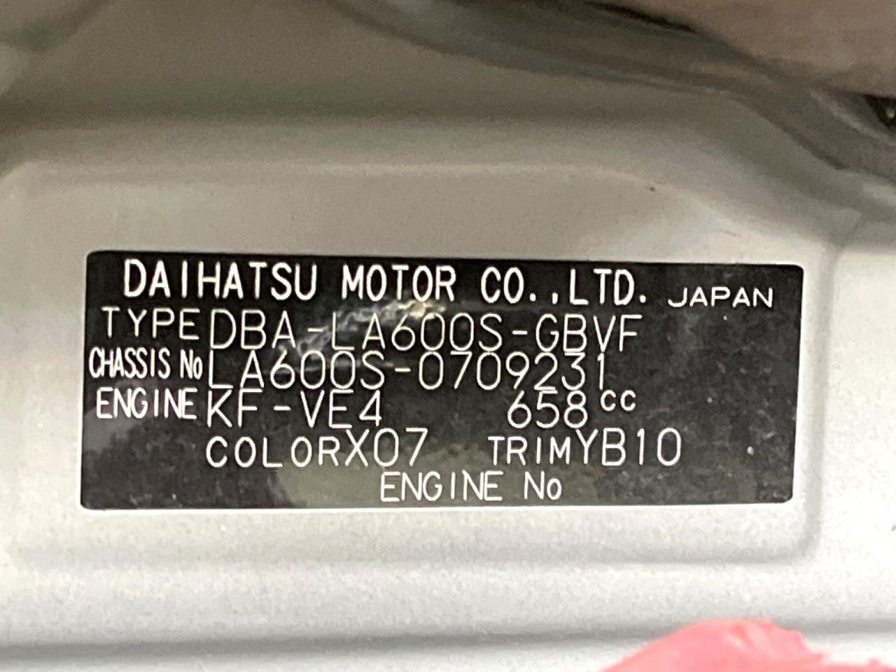 | Chassis No | LA600S-0709231 |