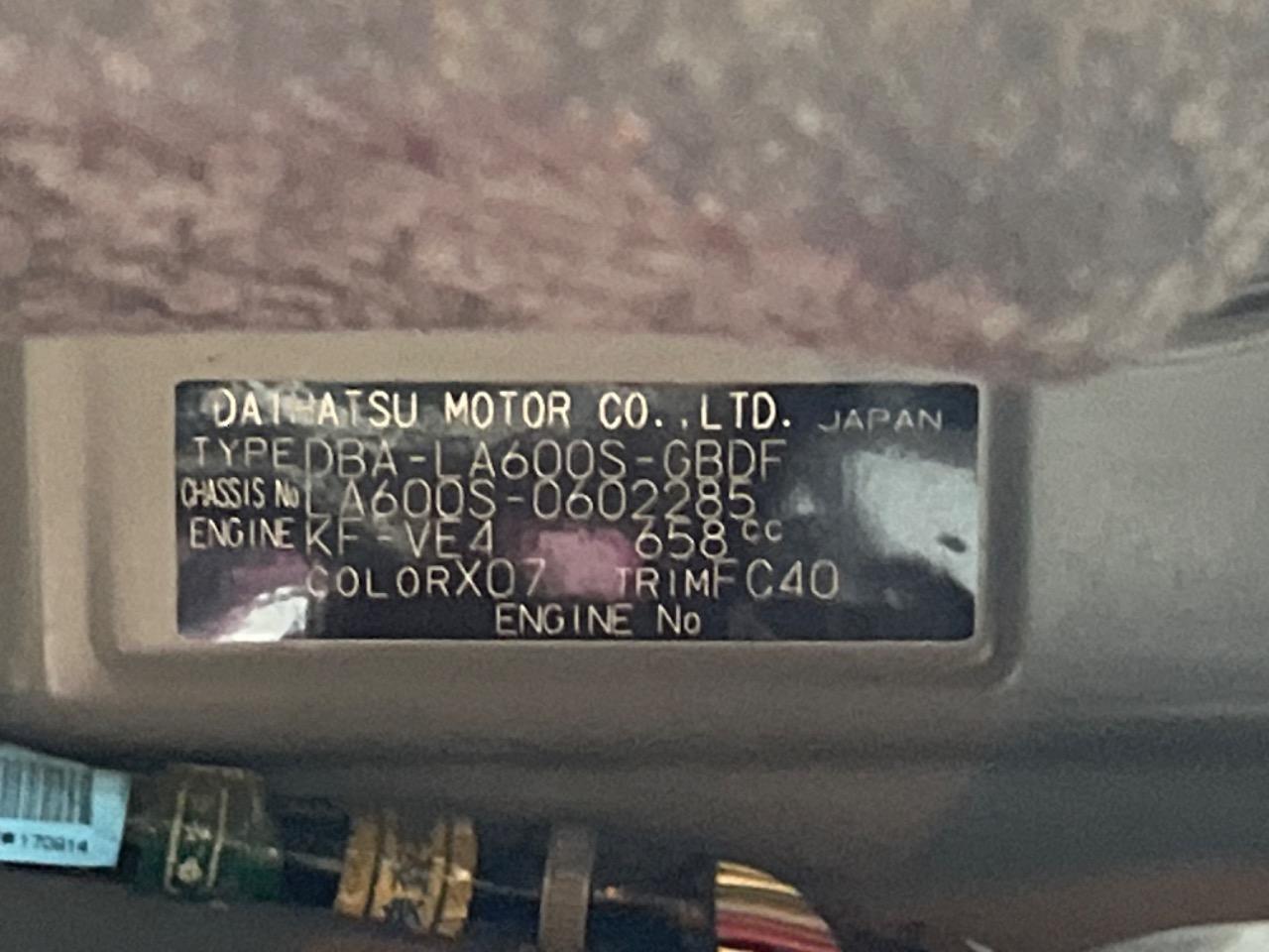 | Chassis No | LA600S-0602285 |