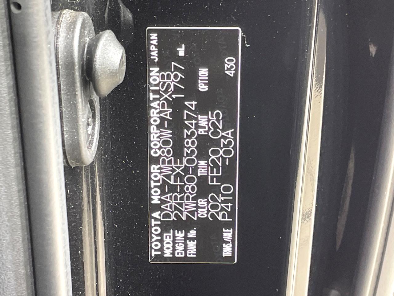 | Chassis No | ZWR80-0383474 |