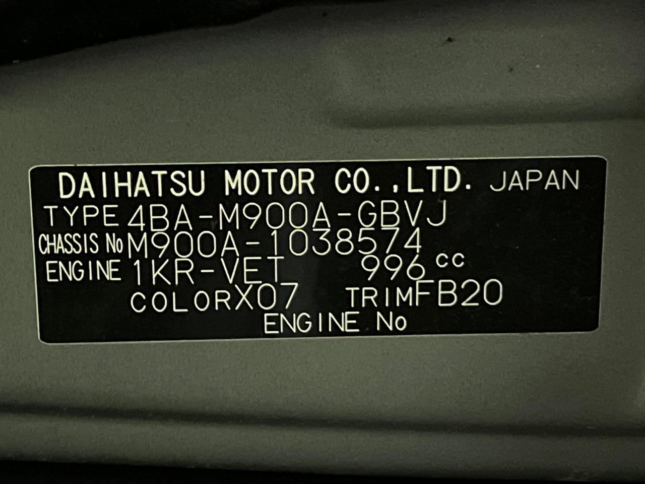 | Chassis No | M900A-1038574 |