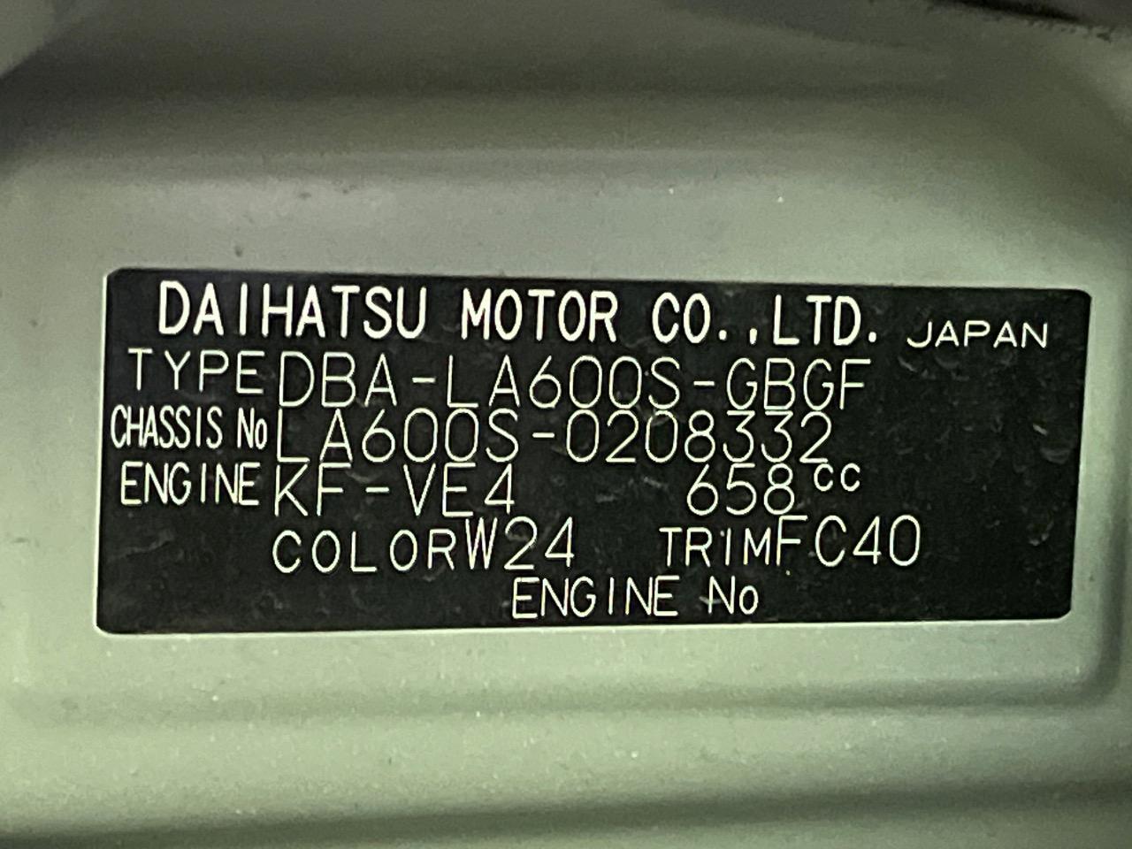 | Chassis No | LA600S-0208332 |