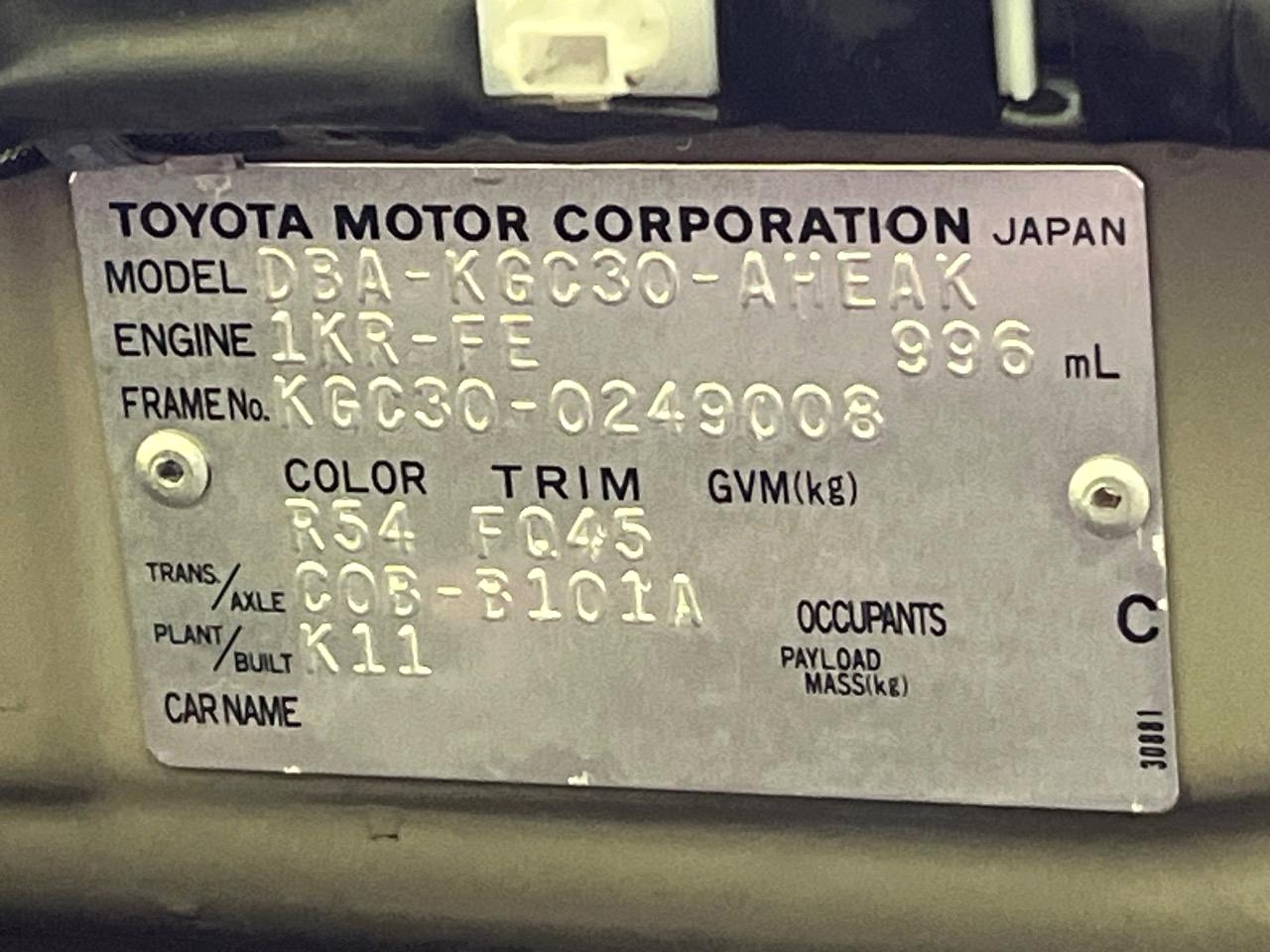 | Chassis No | KGC30-0249008 |