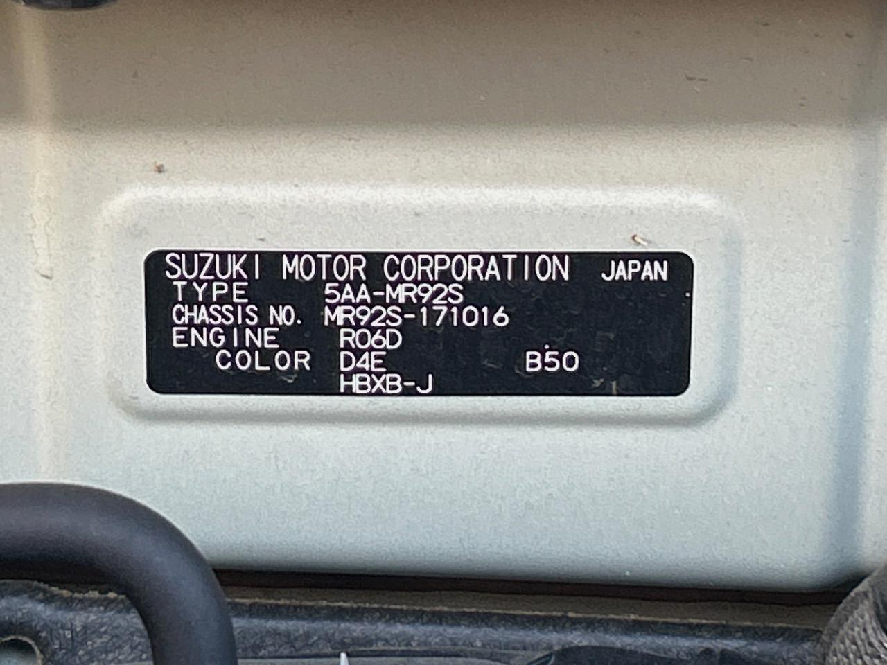 | Chassis No | MR92S-171016 |