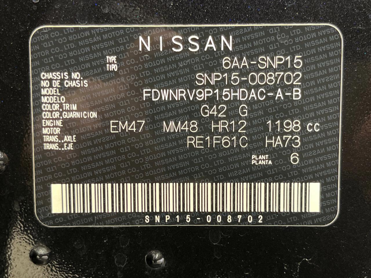 | Chassis No | SNP15-008702 |