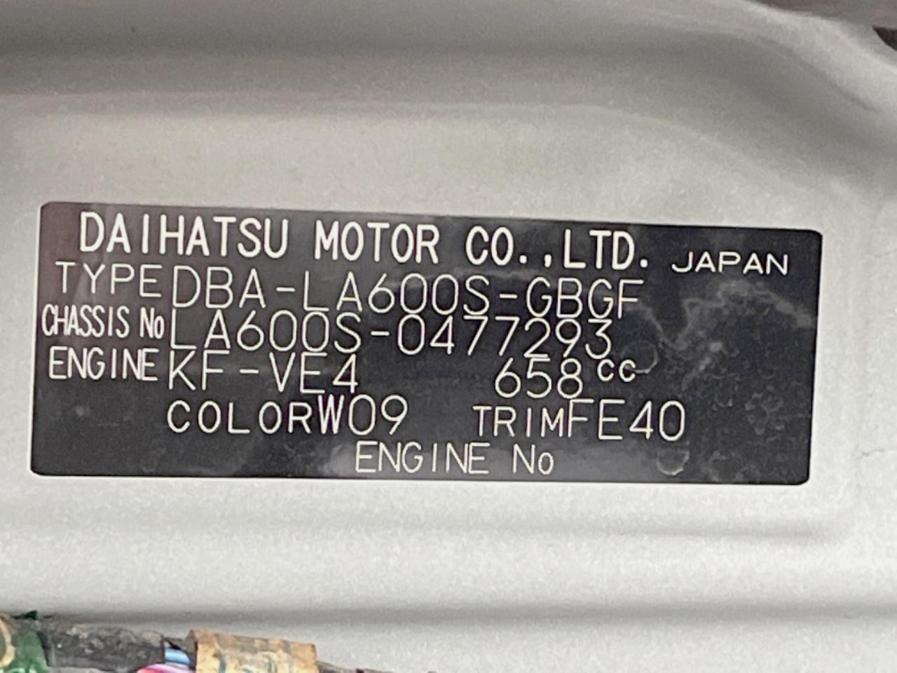 | Chassis No | LA600S-0477293 |