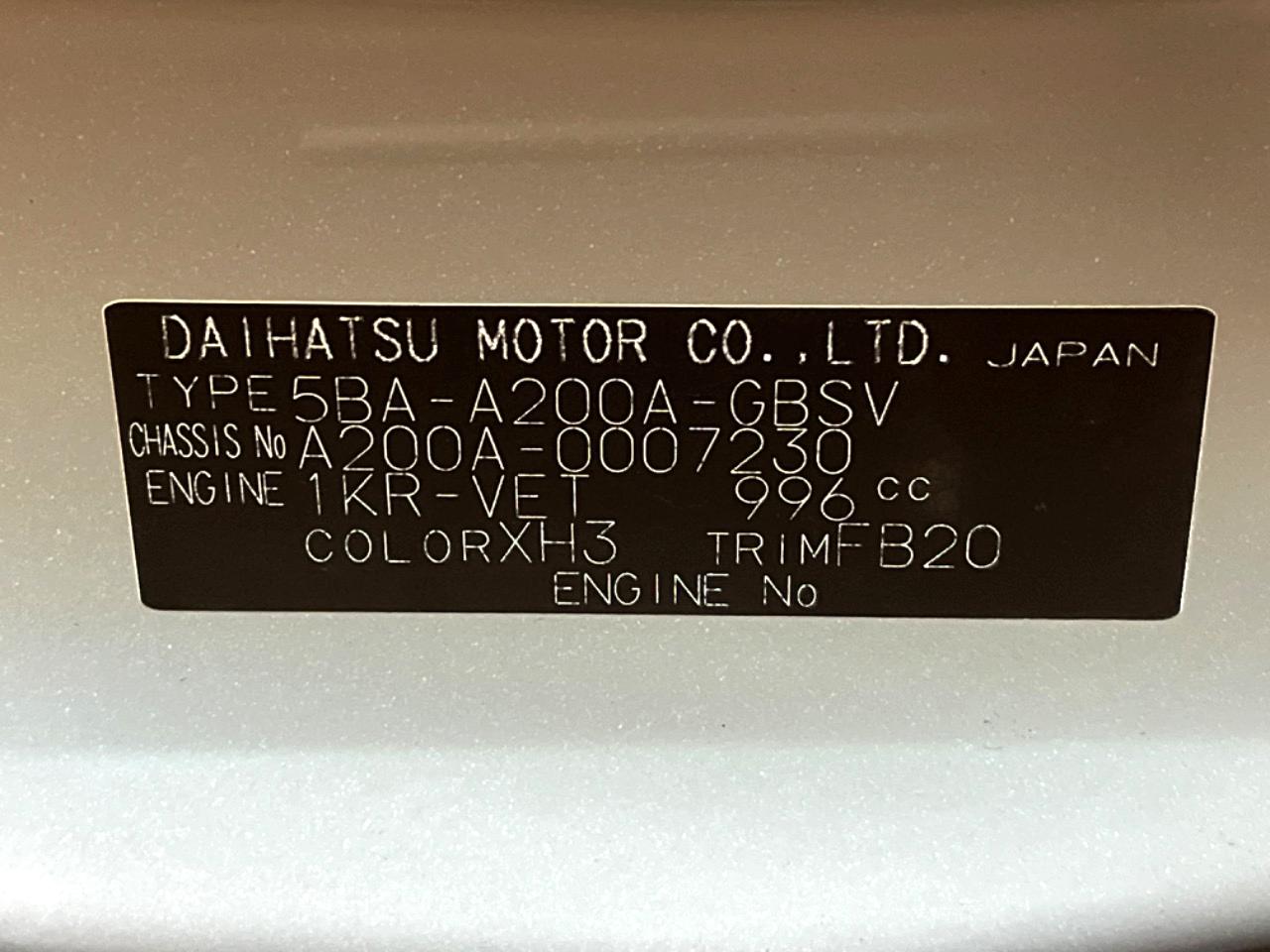 | Chassis No | A200A-0007230 |