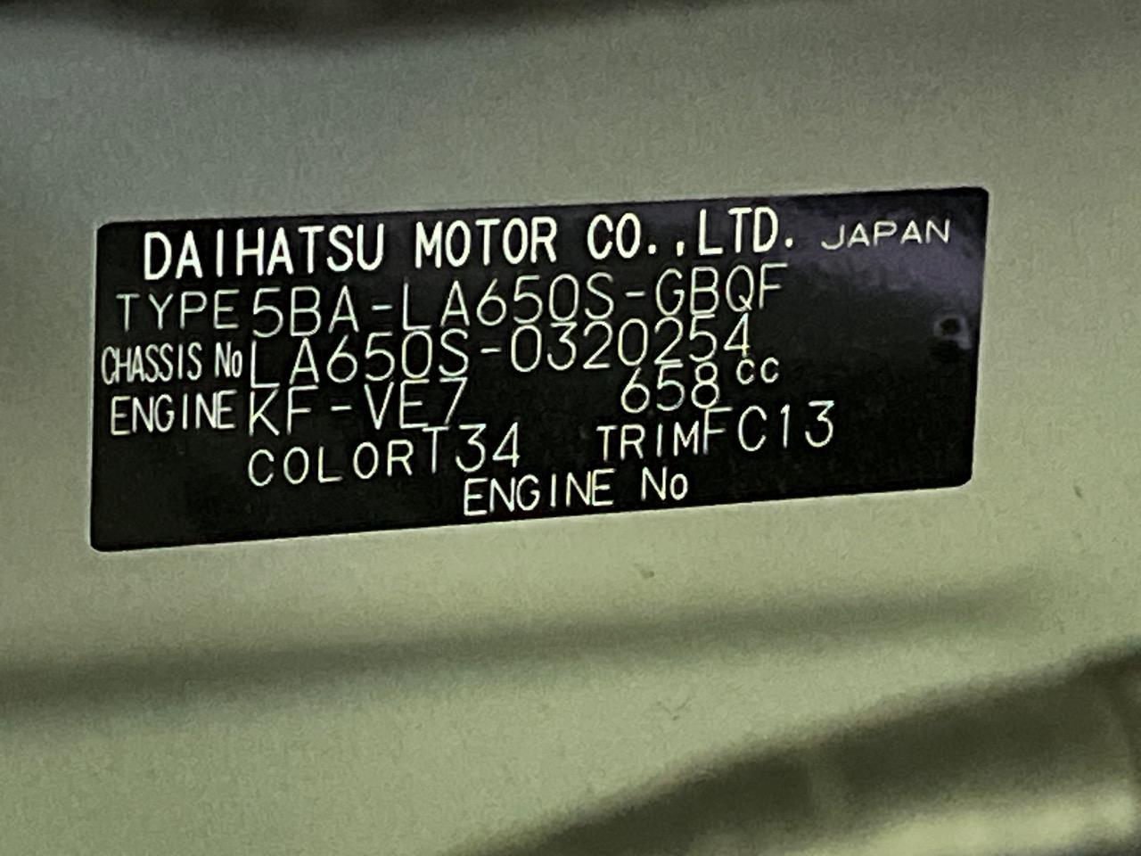 | Chassis No | LA650S-0320254 |