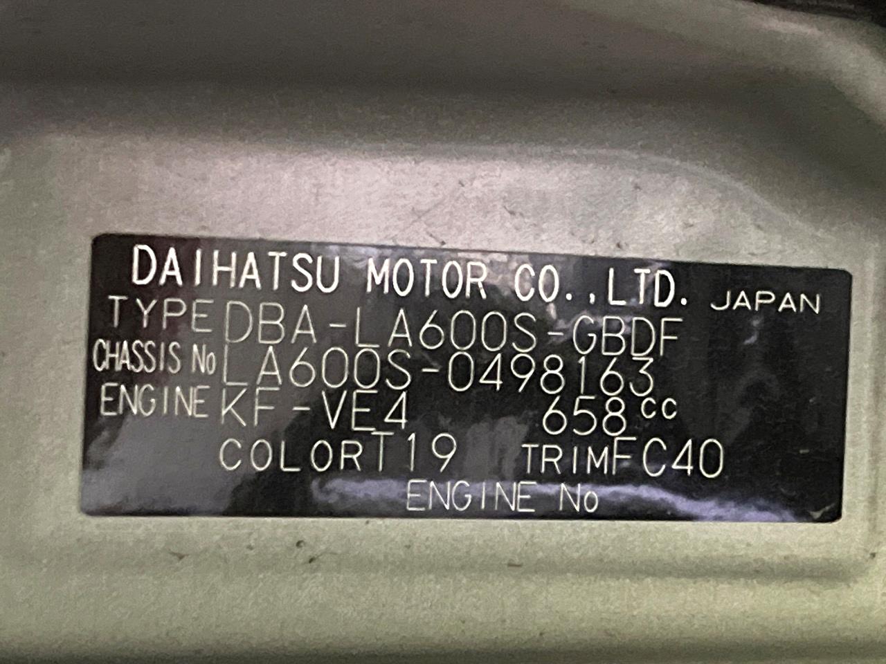 | Chassis No | LA600S-0498163 |