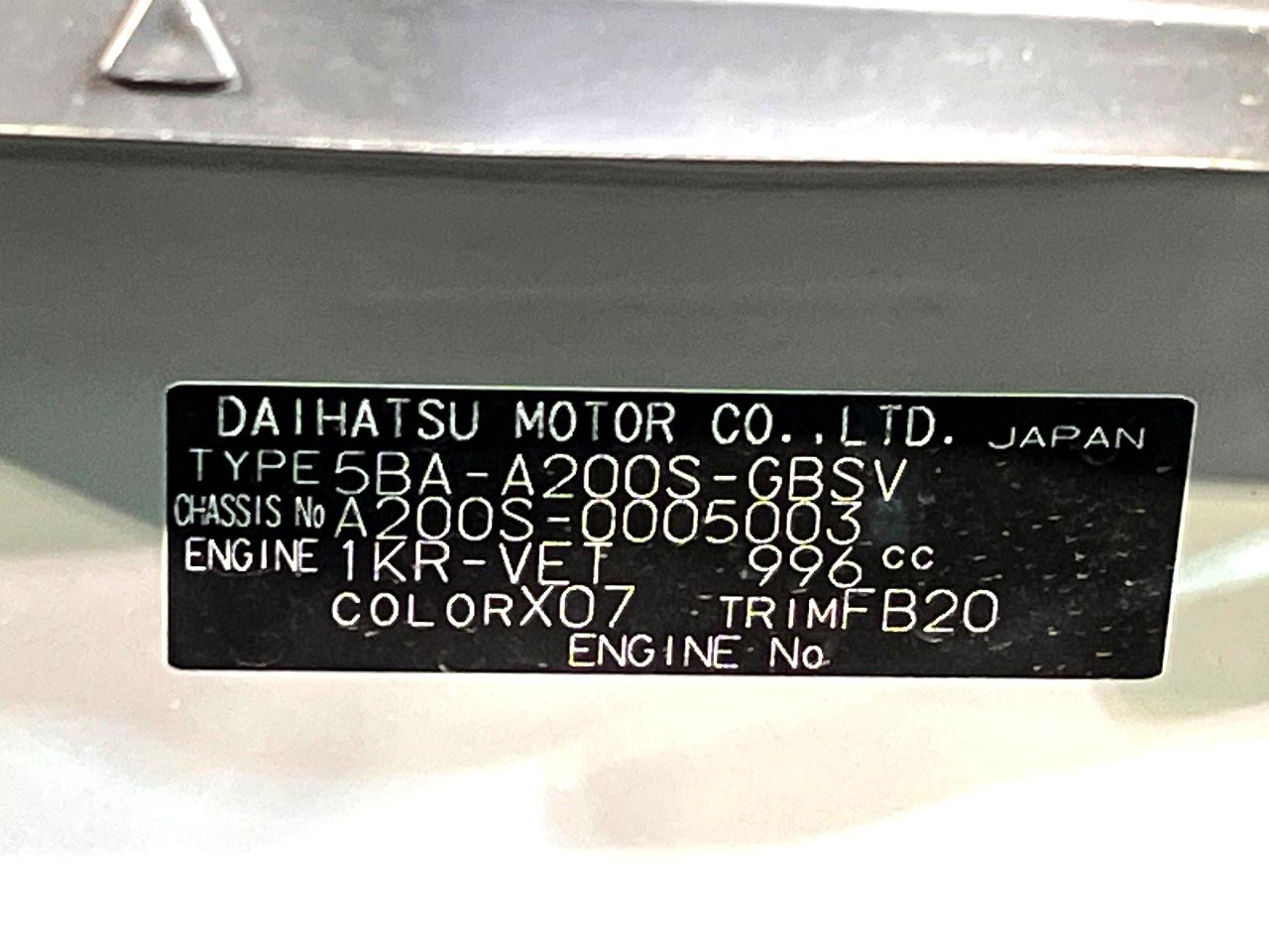 | Chassis No | A200S-0005003 |