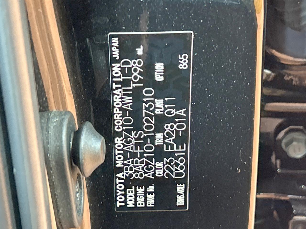 | Chassis No | AGZ10-1027310 |
