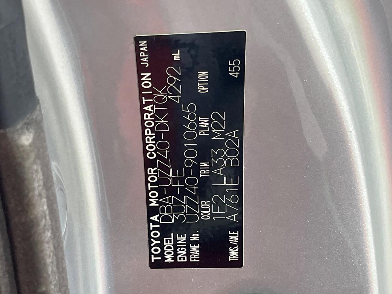 | Chassis No | UZZ40-9010665 |