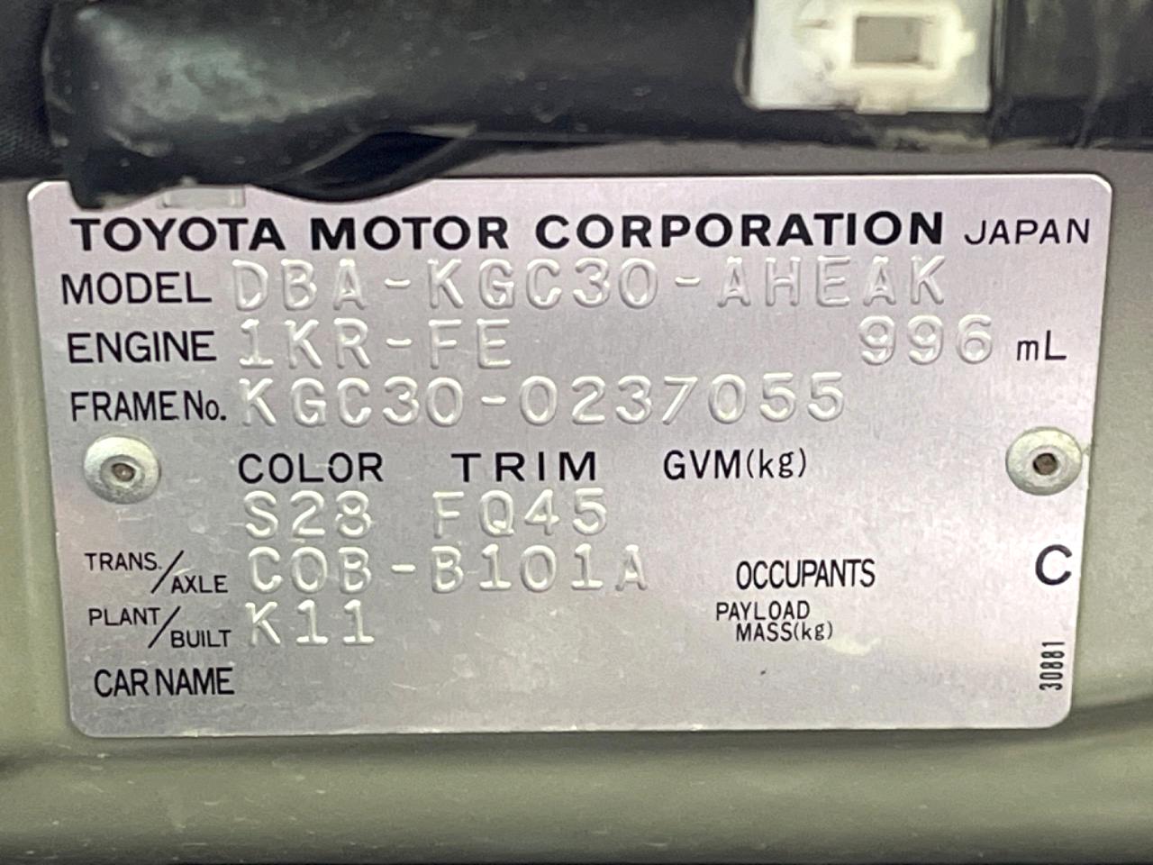 | Chassis No | KGC30-0237055 |