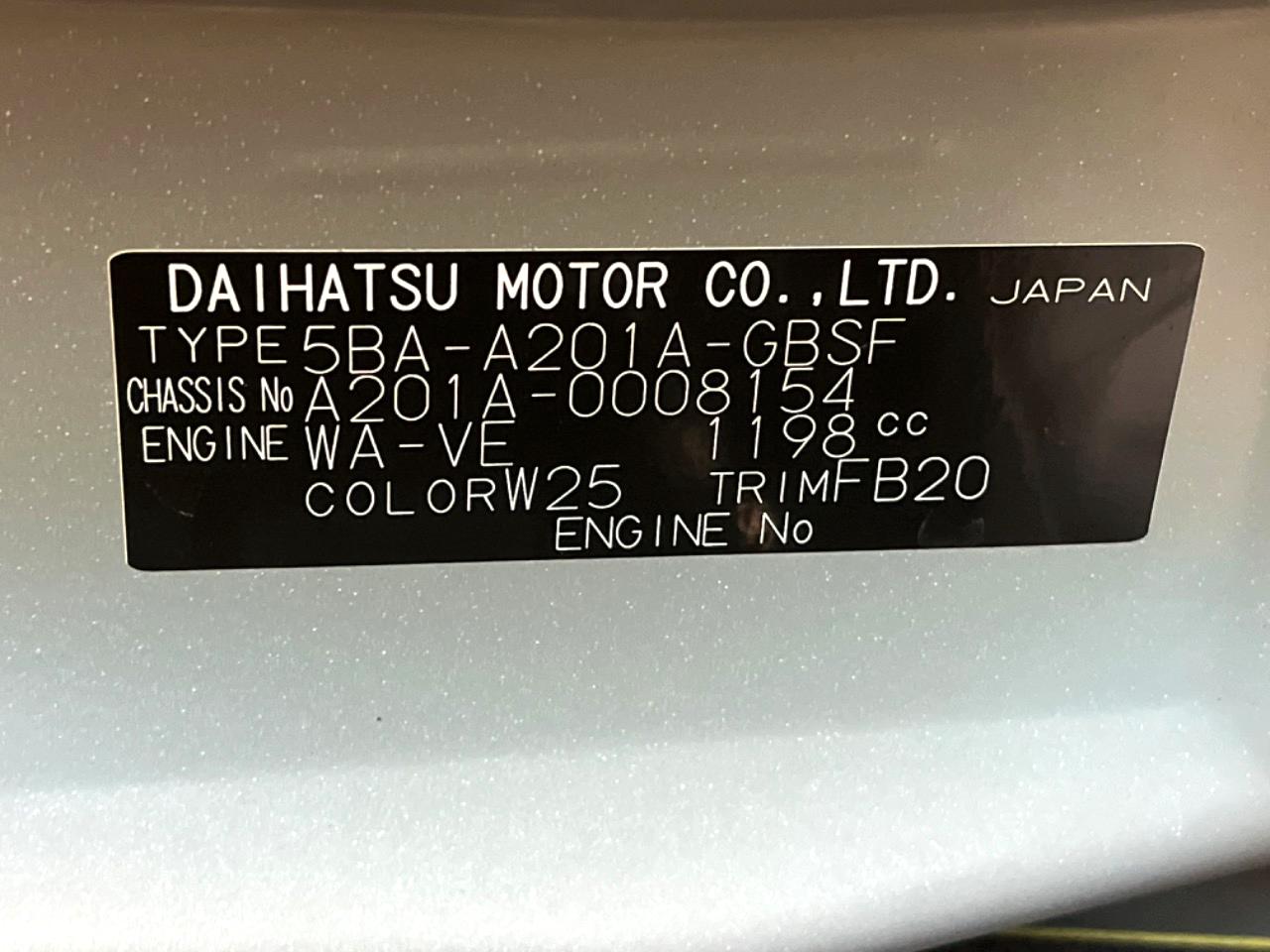 | Chassis No | A201A-0008154 |