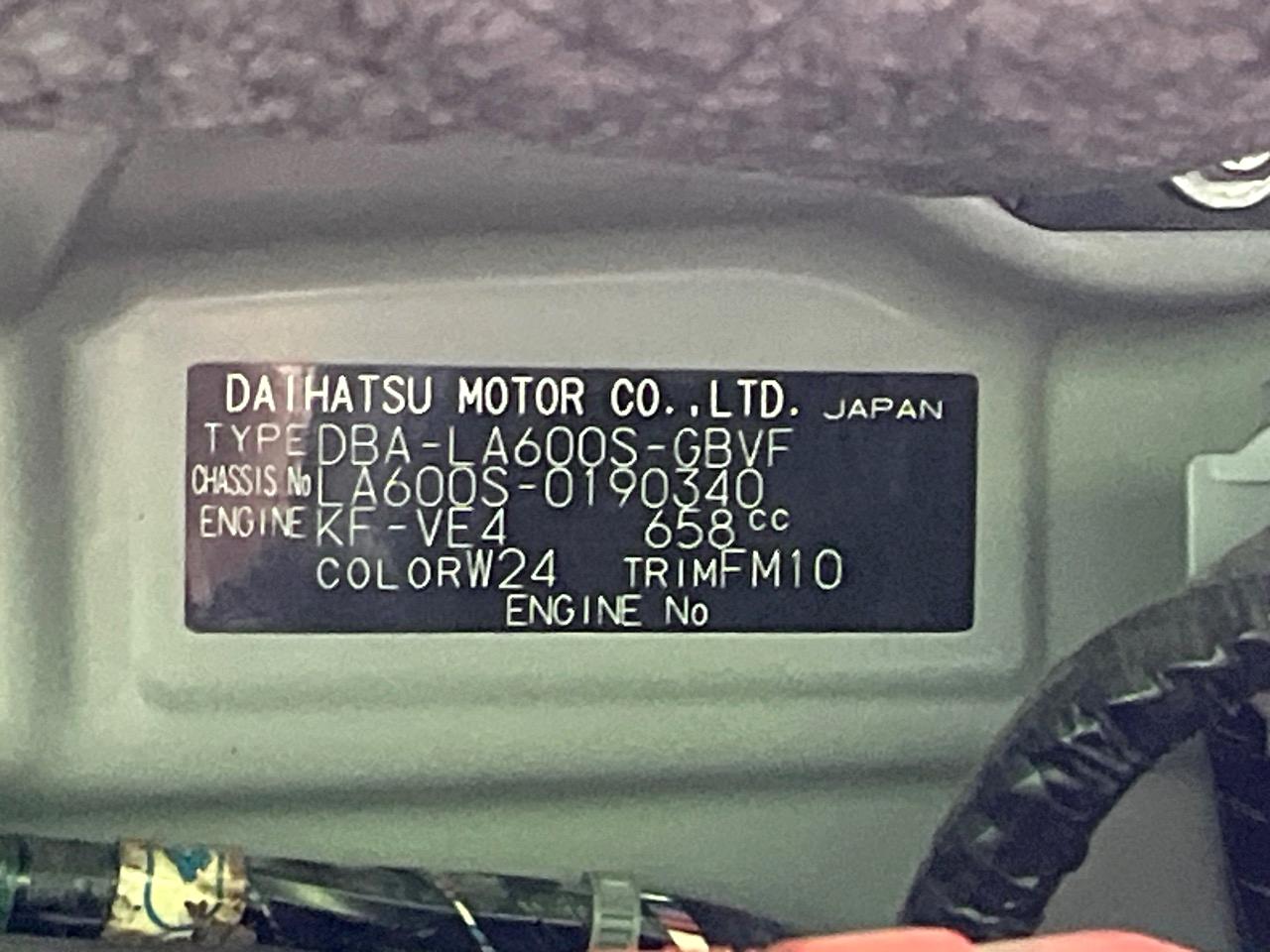 | Chassis No | LA600S-0190340 |